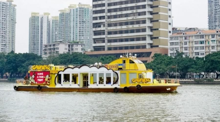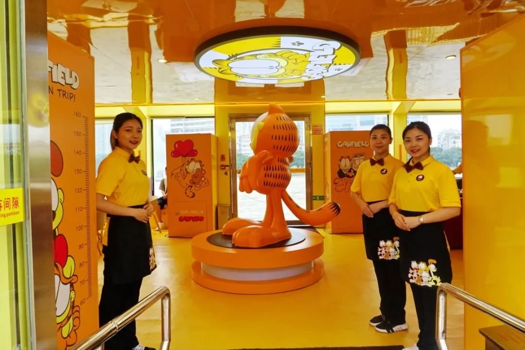 加菲猫主题船是199客位新型游船一楼和二楼客舱各设有60个座位游船与国际知名IP——加菲猫相结合富的动漫元素仿佛置身于童话世界。
