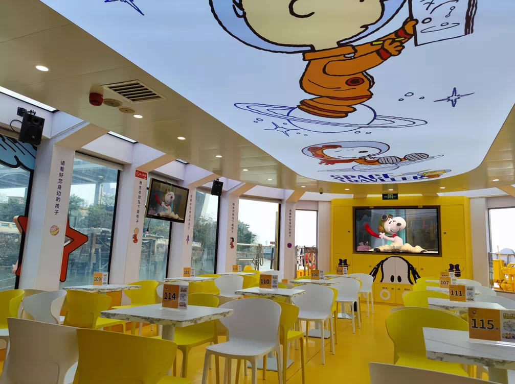 史努比超治愈的暖黄色船瞬间将你带回到童年的幸福时刻。30米+的史努比漫画长卷覆盖了船舱的整个天花板,从背景墙到展览陈列柜窗台、空调柜、桌面……每一处都经过精心布置,带你走进神秘的史努比太空世界。