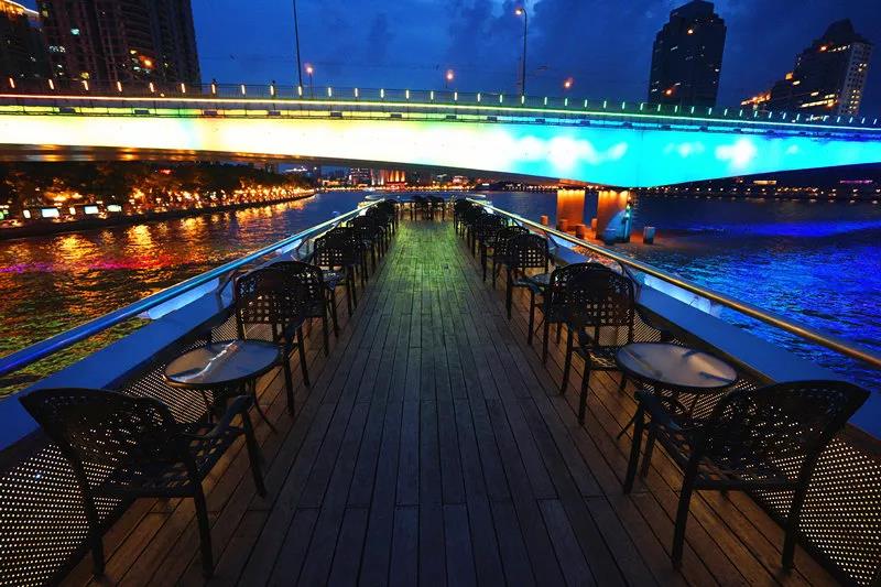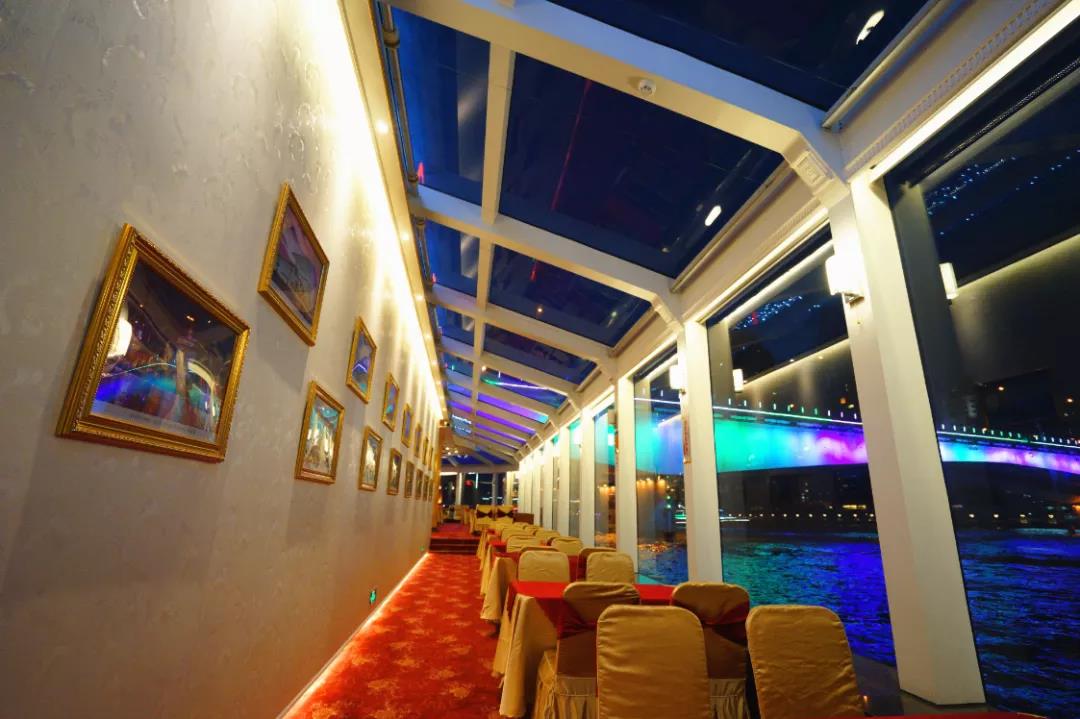 168客位双层游船,太空理念的独特设计,一楼船头为宽敞的大厅,两旁是观光走廊,720°的视觉享受,让你体验星空与珠水融为一体的美妙感受。二楼是全方位开放式的观光平台(约100平方米)。整体布局宽松舒适,可满足高级聚会、观光旅游、商务接待、公司庆典等需求。几年来,珠江梦之星成功接待了包括吉尔吉斯坦总理、芬兰议长在内的外国政要,及我国神舟号宇航员:聂海胜、费俊龙在内的各界知名人士。
